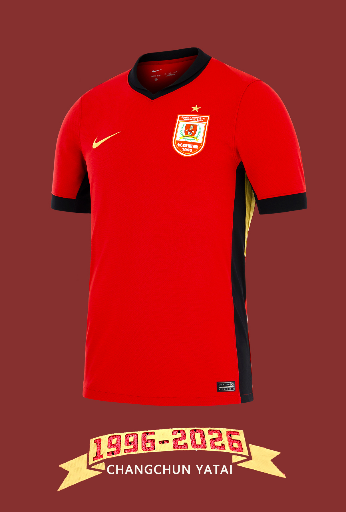 2026赛季,恰逢长春亚泰足球俱乐部成立30周年这一重要里程碑,为致敬球队辉煌历程,主场球衣在整体设计中融入优雅的金色点缀——从侧边线到胸前Swoosh,皆以金色呈现,彰显尊贵与纪念价值。