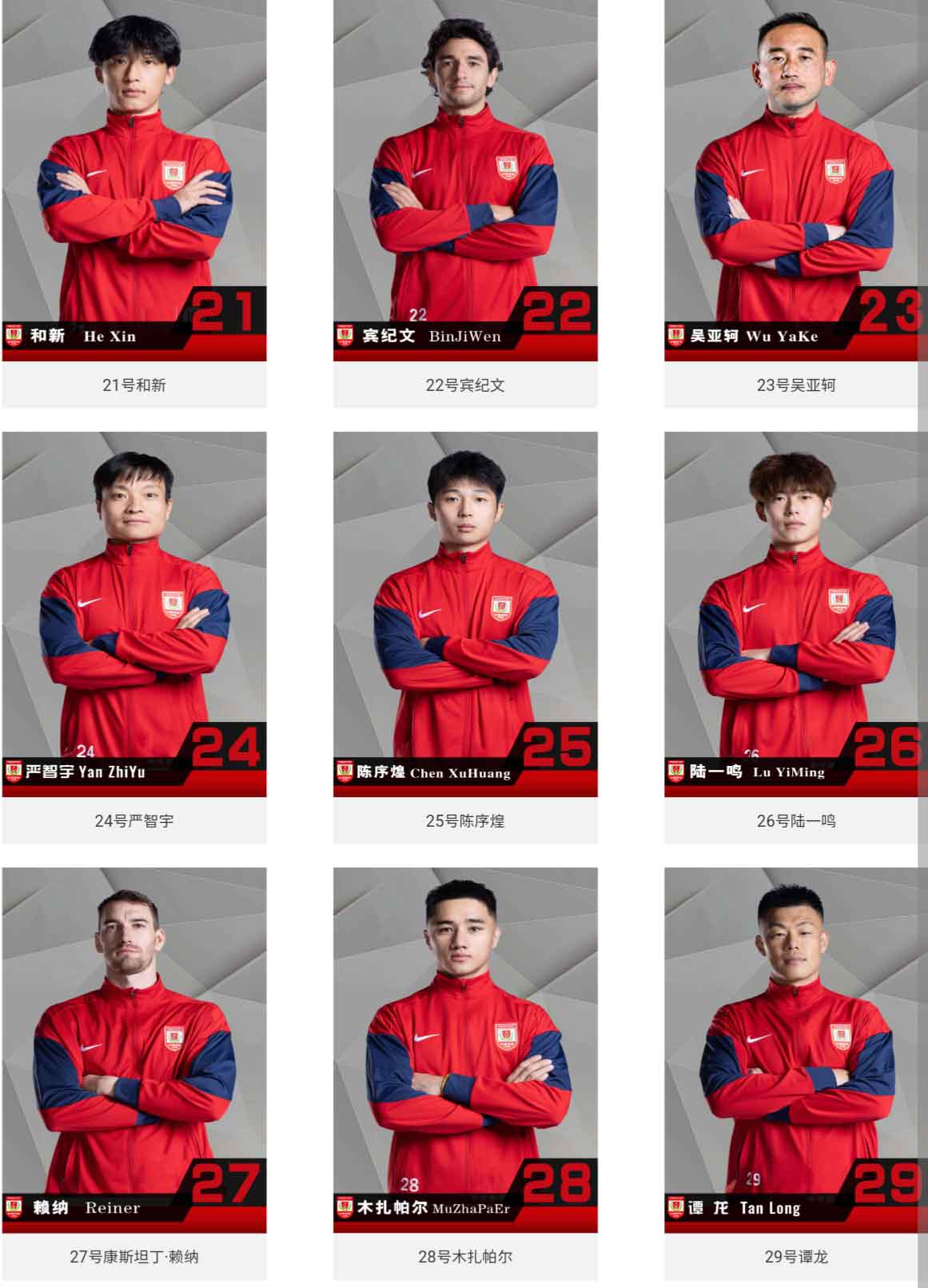 相比之下,谭龙、吴亚轲、严智宇、孙国梁、安智诚继续保留上赛季使用的号码,景泊羲选择了14号、徐越选择了15号、迪力依米提选择了16号、吴俊杰选择了41号、樊超选择了44号、杨镜帆选择了45号。此外,今年从U21队升入一线队的杜恺乐、武之程、范厚泰、陆一鸣、魏凯乐、巴特分别选择了3号、8号、20号、31号、34号。